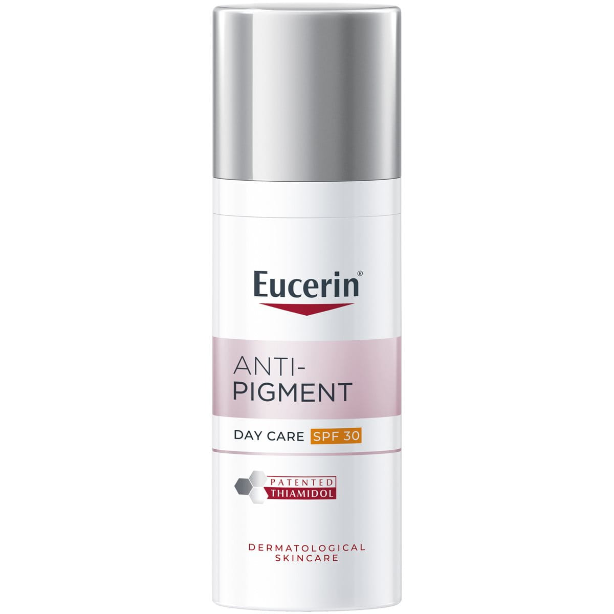 Eucerin Anti-Pigment -linja on kehitetty erityisesti vähentämään ihon hyperpigmentaatiota. Kaikki linjan kuusi tuotetta - päivävoide, yövoide, seerumi, paikallishoitotuote, silmänympärysvoide ja puhdistusgeeli - sisältävät Thiamidolia, tehokasta ja patentoitua ainesosaa, joka vaikuttaa pigmentaation lähteellä vähentämällä melaniinin tuotantoa.