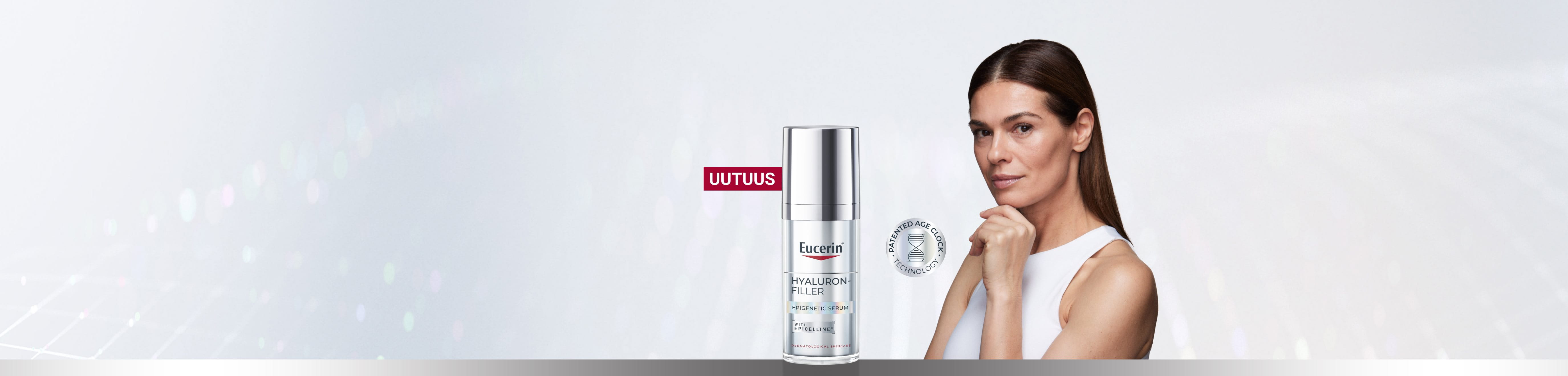 - Eucerin Hyaluron-Filler -linja on kehitetty erityisesti hoitamaan ensimmäisiä ikääntymisen merkkejä. Se saa ihon tuntumaan pehmeämmältä ja sileämmältä sekä täyttää hienoja juonteita.