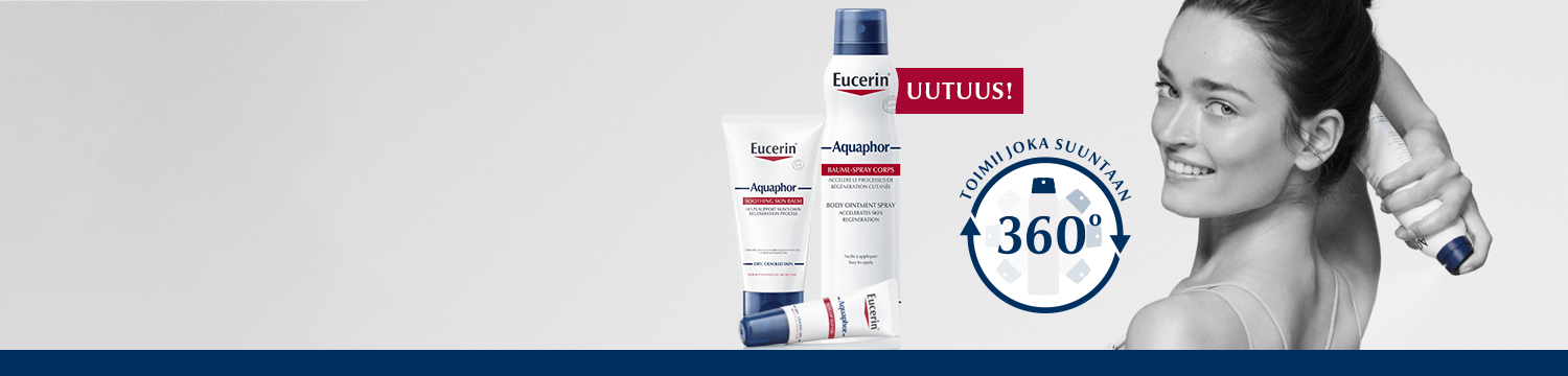 Eucerin Aquaphor -tuotesarja antaa erittäin kuivalle ja ärtyneelle iholle juuri sitä, mitä se tarvitsee. Tuotteet muodostavat iholle puoliläpäisemättömän suojakalvon, joka tasapainottaa luonnollista kosteuden ja hapen liikettä sekä iholta poispäin että iholle. Tällöin iho saa "hengittää". Lisäksi ne vahvistavat ihon luonnollista suojamuuria.