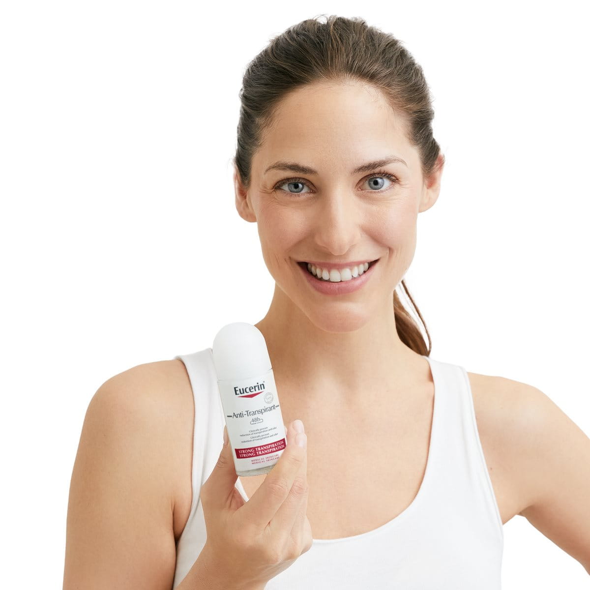 Antiperspirantit ehkäisevät tehokkaasti hikoilua. Niiden vaikutus perustuu hien erityksen estämiseen hikirauhasiin vaikuttamalla. Eucerin 48h Anti-Transpirant Roll-On suojaa hikoilulta ja sen aiheuttamilta tuoksuilta 48 tunnin ajan.
