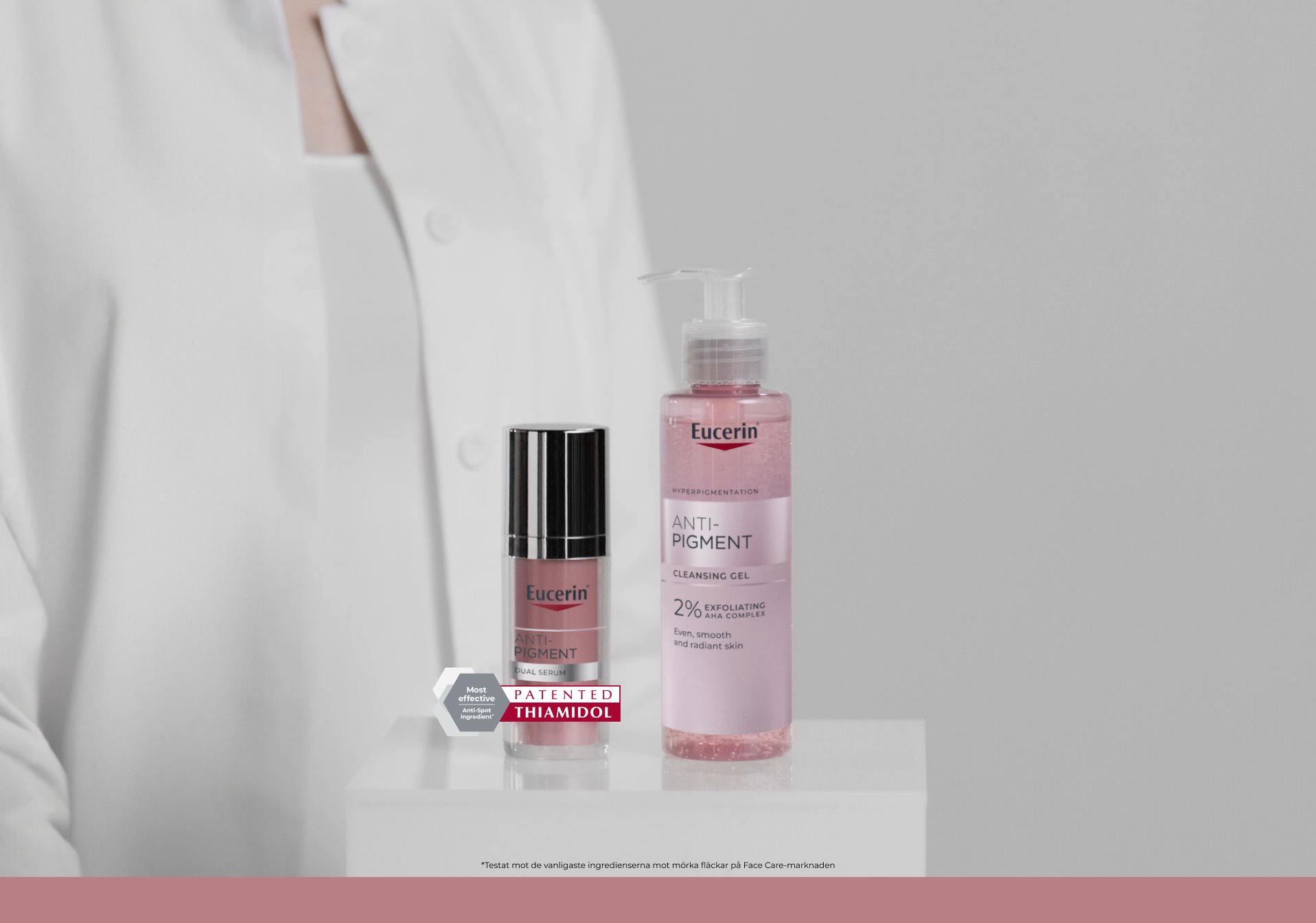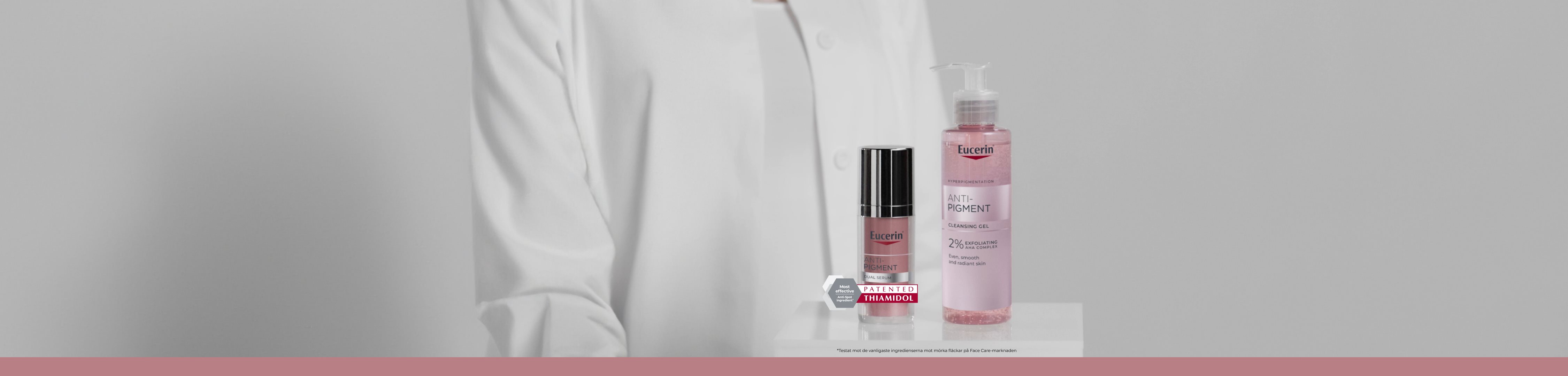 Kaikki Eucerin Anti-Pigment -sarjan tuotteet – päivävoide, yövoide, kaksoisseerumi ja spot corrector -paikallishoitotuote – sisältävät Thiamidolia, tehokasta ja patentoitua ainesosaa, joka vaikuttaa pigmenttimuutosten syntymekanismiin vähentämällä melaniinin liiallista tuotantoa. Sen on kliinisesti ja dermatologisesti osoitettu häivyttävän maksaläiskiä ja ehkäisevän niiden muodostumista. Ensimmäiset tulokset näkyvät jo kahden viikon jälkeen, ja säännöllisessä käytössä saavutetaan vielä merkittävämpiä tuloksia.