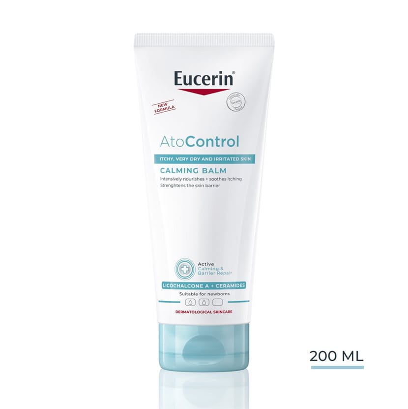 Eucerin AtoControl Calming Balm on kevyt, mutta tehokkaasti kosteuttava öljy vedessä -voide, jonka koostumus sisältää Licochalcone A:ta, keramideja ja sheavoita. Nämä ainesosat vahvistavat ihon luonnollista suojamuuria, lievittävät kutinaa ja kuivuutta sekä rauhoittavat ihoa. Voidetta suositellaan käytettäväksi myös pahenemisvaiheessa yhdessä AtoControl Acute Care -voiteen, Anti-Itch Spray -suihkeen ja lääkärin määräämän hoidon kanssa.