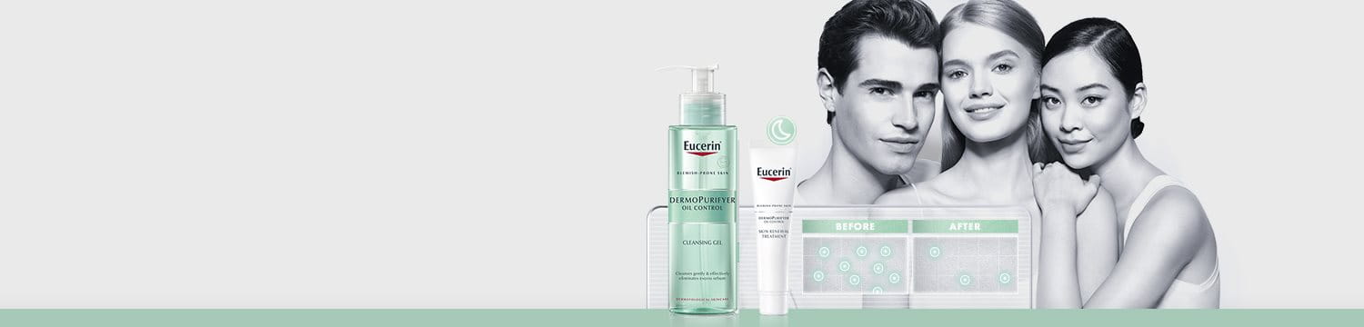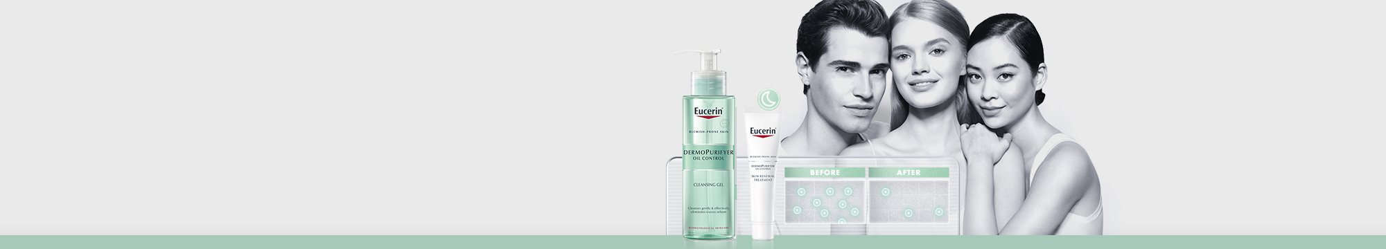 Eucerin Dermopurifyer -tuotesarja on kehitetty erityisesti taistelemaan niitä tekijöitä vastaan, jotka aiheuttavat aknetaipumusta ja näppyjä:
