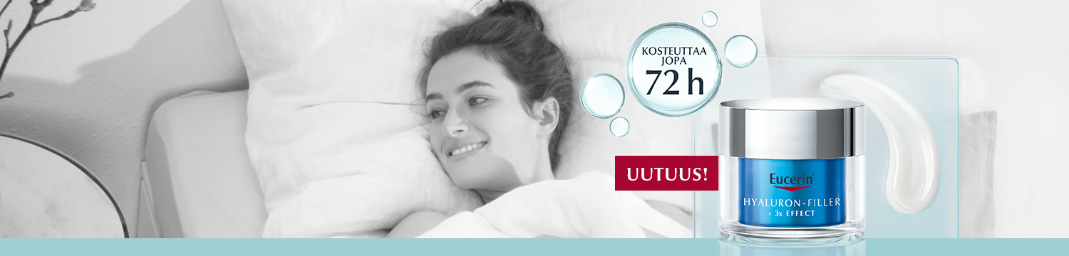 Eucerin Hyaluron-Filler - tuotesarja on kehitetty erityisesti hoitamaan ensimmäisiä ikääntymisen merkkejä, kuten hienoja juonteita ja ryppyjä. Eucerinin ainutlaatuinen yhdistelmä suuri- ja pienimolekyylistä hyaluronihappoa, glysiini-saponiinia ja enoksolonia täsmävaikuttaa juonteisiin ja ryppyihin.