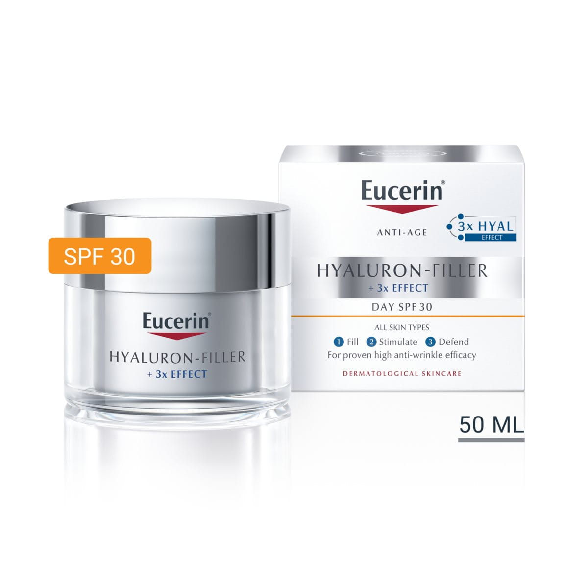 Eucerin Hyaluron-Filler Day SPF 30 on monivaikutteinen päivävoide, joka auttaa silottamaan hienoja juonteita ja ryppyjä sekä suojaa ihoa ennenaikaiselta ikääntymiseltä. Voide sopii kaikille ihotyypeille ja on suunniteltu erityisesti ehkäisemään ihon ikääntymisen ensimmäisiä merkkejä.