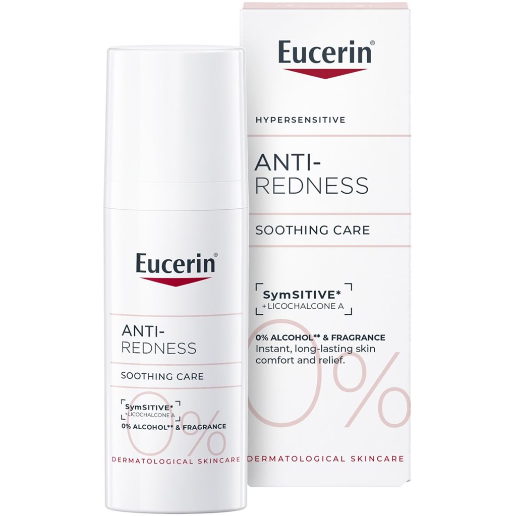 Ihon suojakerrosta on tärkeää suojella yliherkkyysoireilta ja allergisilta reaktioilta. Siksi Eucerin AntiREDNESS Soothing Care -voiteen koostumus on yksinkertainen, siinä on vain vähän erilaisia ainesosia ja se on pakattu kaksoisventtiilillä varustettuun pakkaukseen, joka suojaa voidetta epäpuhtauksilta ja hapettumiselta.